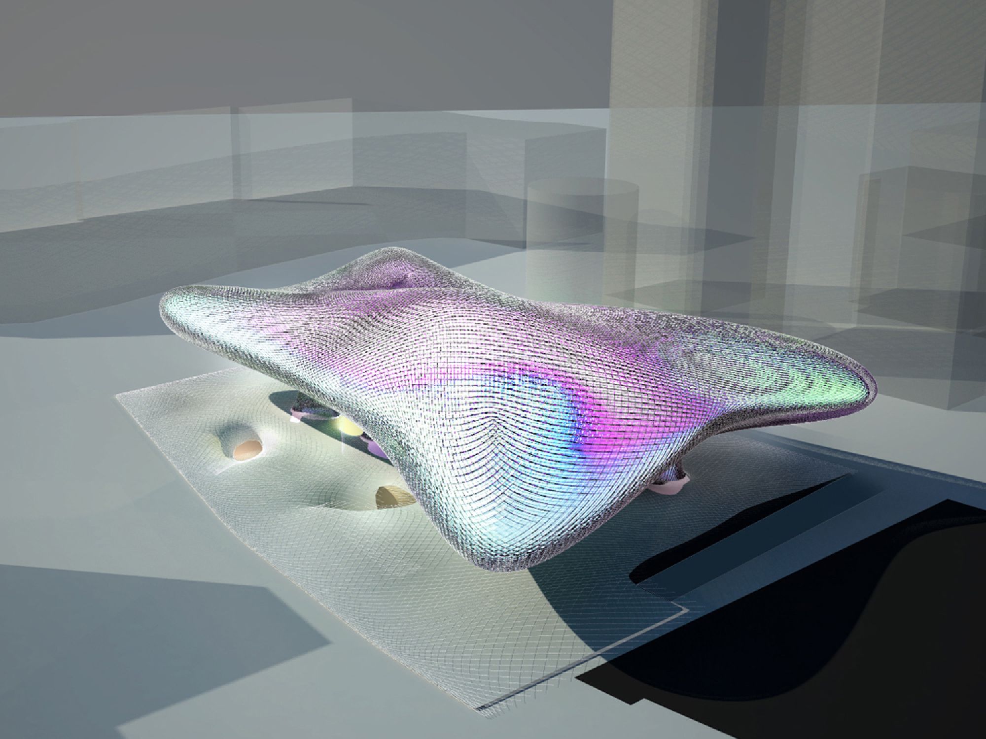 Fusion Cloud is a cloud of cutting-edge culture that floats in the sky over Busan. These clouds change from time to time, like weather and seasonal changes. The changes are made with advanced technologies such as digital technology and moiré effects. Fusion Cloud uses the ground floor as a media park. The 3D theater is located in a cloud floating in the air. When you enter the main hall through Media Park, you will meet the central hall with a high ceiling height. This hall is also a media gallery and connects shopping center, F/B, 3D theager and Kids Experience Hall.